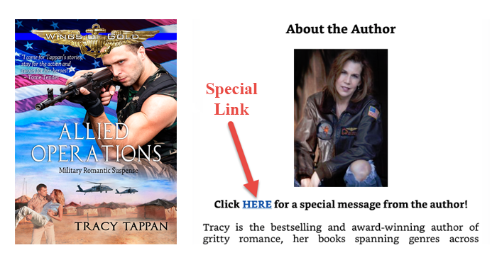 Download my new military romantic suspense, ALLIED OPERATIONS now, flip to the back of the book, then click under my author picture where it says: “Click HERE for a special message from the author.” This will bring you directly to my special contest entry page. Then simply type in your email to enter! Woot! See? Easy!