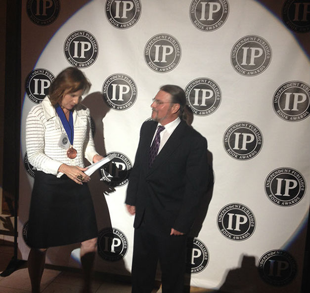 Posing with spokes model Trey Gerrald (from "Orange is the New Black") receiving the IPPY Award Bronze Medal for romance.