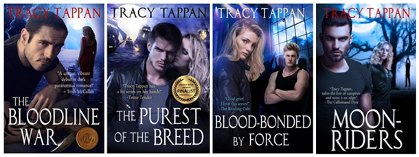 Over 600 FIVE Star Reviews on AMAZON “If you like Kresley Cole, Gena Showalter, Lara Adrian, Larissa Ione, and J.R. WARD you HAVE to read this new series by Tracy Tappan”~ Amazon Review ~"Jacken can hold his own against the best of the BLACK DAGGER BROTHERHOOD"Goodreads Review “BLOODLINE WAR is the BEST book I have read this year”Rage, Sex, and Teddy Bears